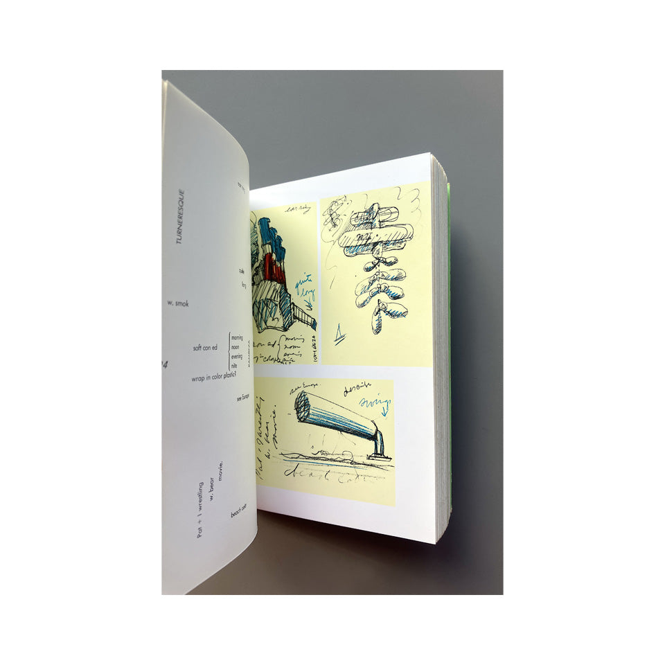 『Notes in Hand』はクレス・オルデンバーグの私的ノートから選ばれた五十ページを収録した一冊であり、現代美術におけるこれらの重要文書を初めて詳細に紹介するものである。そこにはオルデンバーグの思考が、あらゆる題材や素材に向き合いながら、個人的な執着と日常の素材を即興的かつ遊び心豊かに融合させていく様子が示されている。これらのノートページは、アーティスト版スケッチブックとも言えるものであり、そこには彼の大型作品への原初的な衝動が刻まれている。」