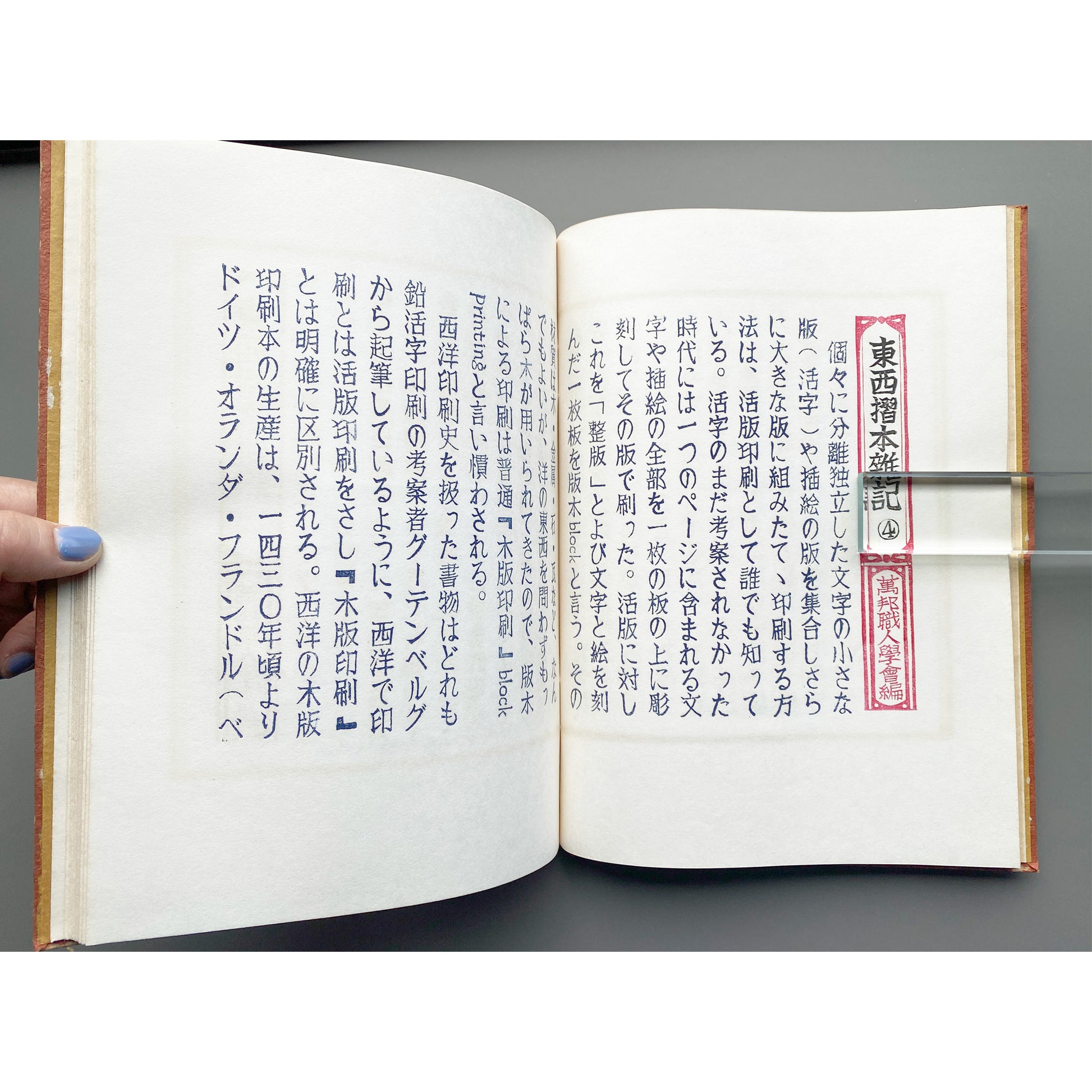 美術家・美術教師の山口汎一(1939–1988)によって制作された私家版《ぱなとりゑ》シリーズは、和綴を基調とした特徴的な装丁に加え、社会風刺、言葉遊び、仏像巡りなど、多岐にわたる主題を自在に横断する。刷られた活字はすべて作家自身が手作業で彫刻したものであり、本文中の図版は写真や版画を切り貼りすることで構成されている。使用される和紙の質感もシリーズごとに異なり、本という媒体が本来備える原初的なおもしろさを強く感じさせる。ページを繰るたびに、その手触りがふたたび恋しくなる作品である。