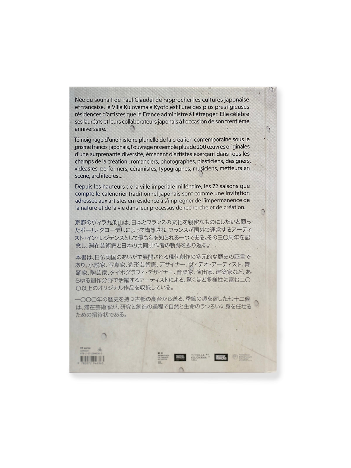京都のヴィラ九条山は、日本とフランスの文化を親密なものにしたいと願ったポール・クローデルによって構想され、フランスが国外で運営するアーティスト・イン・レジデンスとして最も名を知られる一つである。その三〇周年を記念し、滞在芸術家と日本の共同製作者の軌跡を振り返る。本書は、日仏両国の間で展開される現代創作の多言的な歴史の証言であり、小説家、写真家、造形芸術家、デザイナー、ヴィデオ・アーティスト、舞踏家、陶芸家、タイポグラフィ・デザイナー、音楽家、演出家、建築家など、あらゆる創作分野で活躍するアーティストによる、驚くほど多様性に富む二〇〇以上のオリジナル作品を収録している。