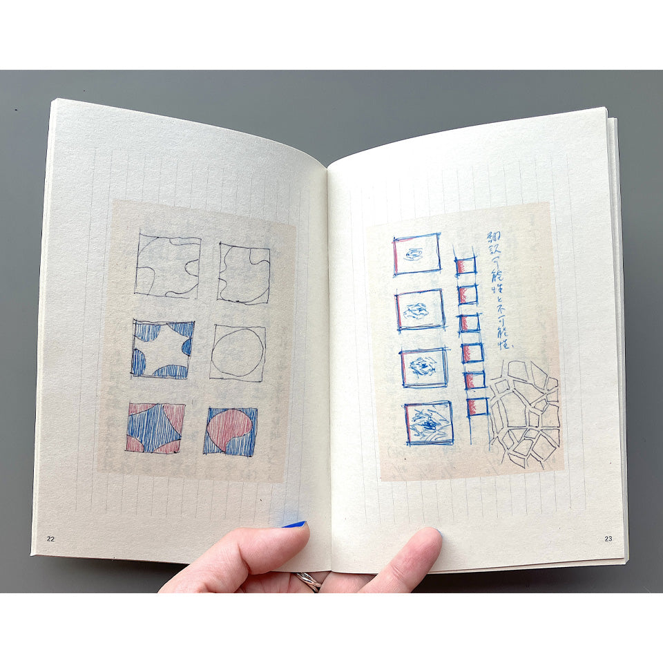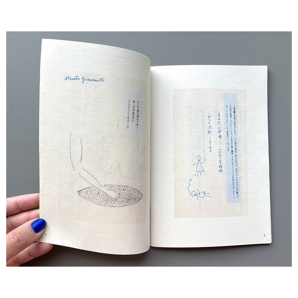 ジャコメッティやサミュエル・ベケットからの引用に添えられた素朴なペン画やメモ、制限された色数による画面構成のアイデア・スケッチなど、書き手の思考と手遊びを辿るような一冊です。