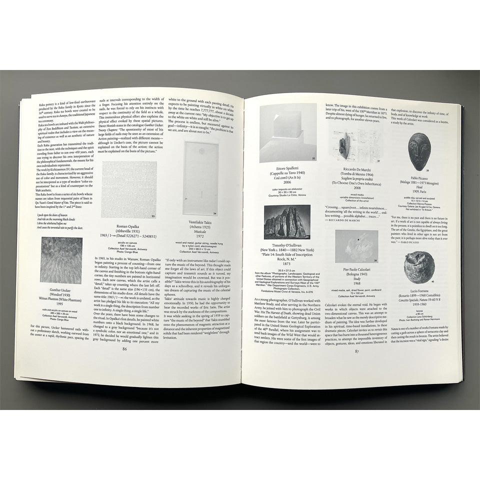 "The exhibition In-Finitum, the third part of the trilogy, that began in 2007 with Artempo. Where Time becomes Art and continued with Academia. Qui es-tu? in Paris in 2008, displayed about 300 objects on the 4 levels of Palazzo Fortuny in Venice. The works of art range from archaeological non-finished items over incomplete Old Master paintings to contemporary installations capturing the infinity. Seeking to penetrate the mystery of the infinite—as philosophers, theologians, mathematicians, physicists, poets, writers, and artists have attempted to do throughout history—signifies entering the boundless and labyrinthine territories of the indeterminate, the absolute, the sum total of the incalculable, the indescribable, the immense, the cosmic, the infinitesimal, the transfinite, the extreme, the divine, Nothingness, the void. The Latin term infinitum has been divided by a hyphen into in-finitum to suggest a more complex and problematic interpretation, including “the infinite in the finite,” the indefinite, and the unfinished." (via the Publisher)